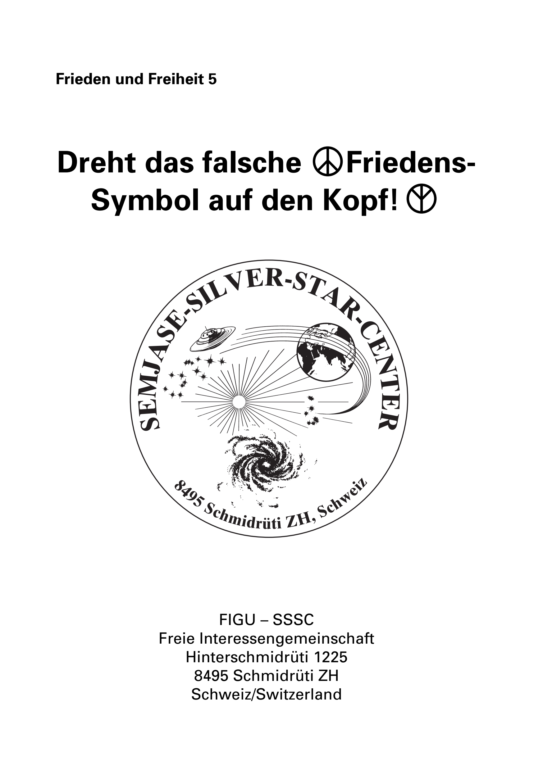 Vorserseite mit dem richtigen Friedenssymbol und «FRIEDEN richtig gestellt»;