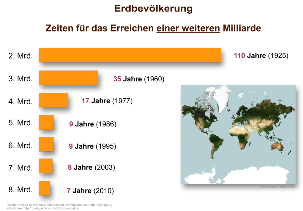 Nachfolgend finden Sie hier die konkreten Zahlen zur Entwicklung der Überbevölkerung auf der Erde.